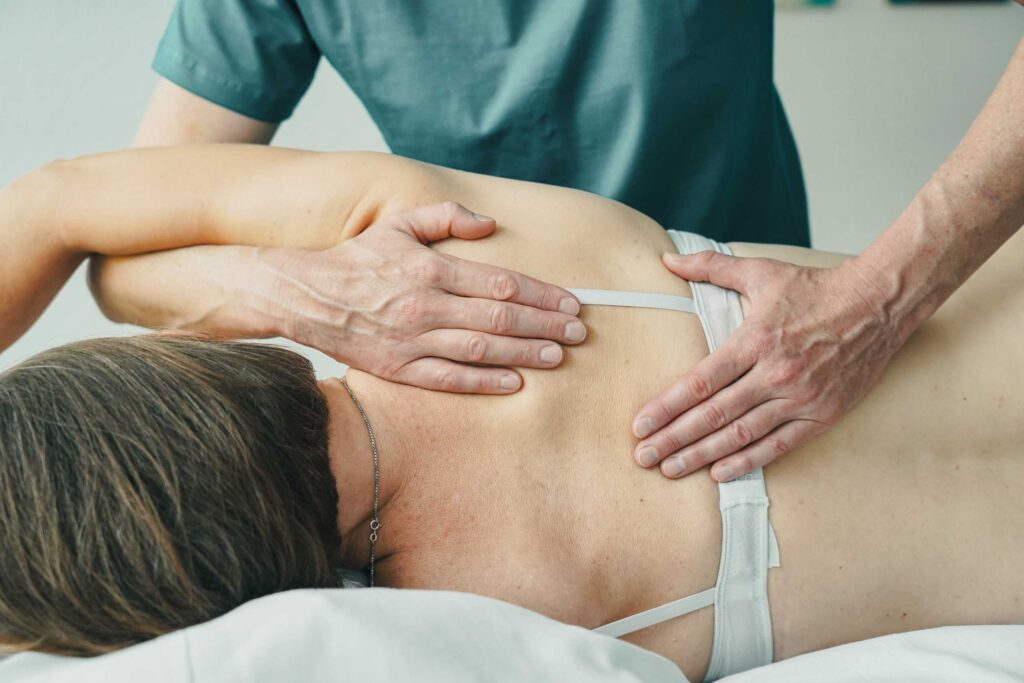 Bei der Massage werden die Haut, die verschiedenen Schichten des Bindegewebes sowie die Muskulatur mit verschiedenen manuellen Techniken oder apparativen Verfahren bearbeitet.